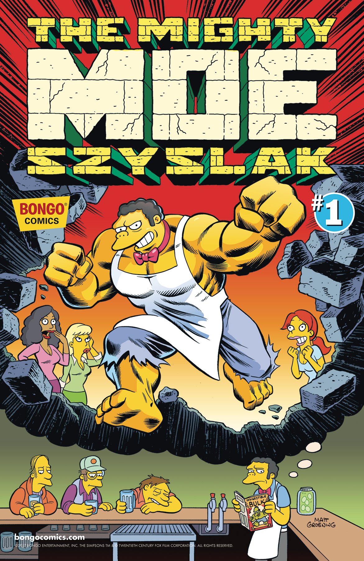 Springfield's belligerent bartender takes his best shot at a one-shot! First, Moe and Barney go on an excellent time-traveling adventure in search of love... and beer! Then, Moe goes in search of his long-lost, evil twin brother. And Moe waxes nostalgic over his lucky bar rag. All this and more Mighty Moe tales await you!