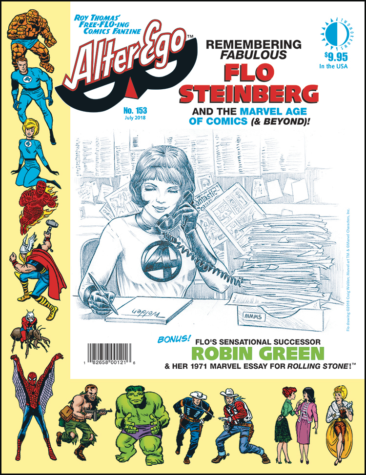 Alter Ego shines the spotlight on the unforgettable Fabulous Flo Steinberg, Marvel's gal Friday during the Marvel Age of Comics, with anecdotes and essays by the pros and friends who knew and loved her! Art by a cavalcade of the Marvel Bullpen's finest - Kirby, Ditko, Wood, Adams, Trimpe, Williamson, Ploog, Severin, and others - plus: Flo's successor, Robin Green, interviewed by Richard Arndt about her time at Marvel - and, as a bonus, her 1971 article on Marvel for