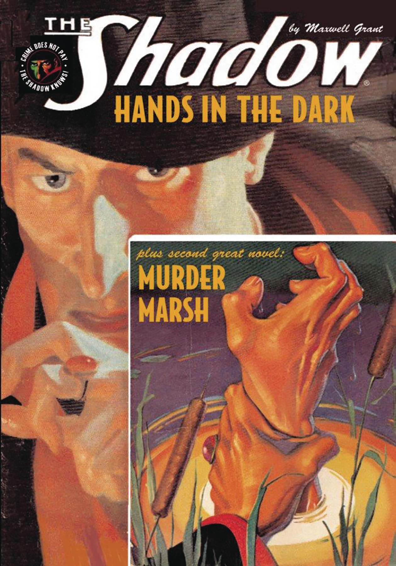 The Master of Darkness crushes crime in classic pulp thrillers by Walter. B. Gibson. First, guided by a hidden mastermind, "Hands in the Dark" deliver sudden death, and the only clue is a blood-red message left by a dead man! Then, as scientists seek an exotic plant and crooks hunt ill-gotten wealth, The Shadow stalks death itself in the haunted "Murder Marsh." This instant collectors item showcases both original color pulp covers by George Rozen plus the classic interior illustrations by Tom Lovell with historical commentary by popular culture historian Will Murray.