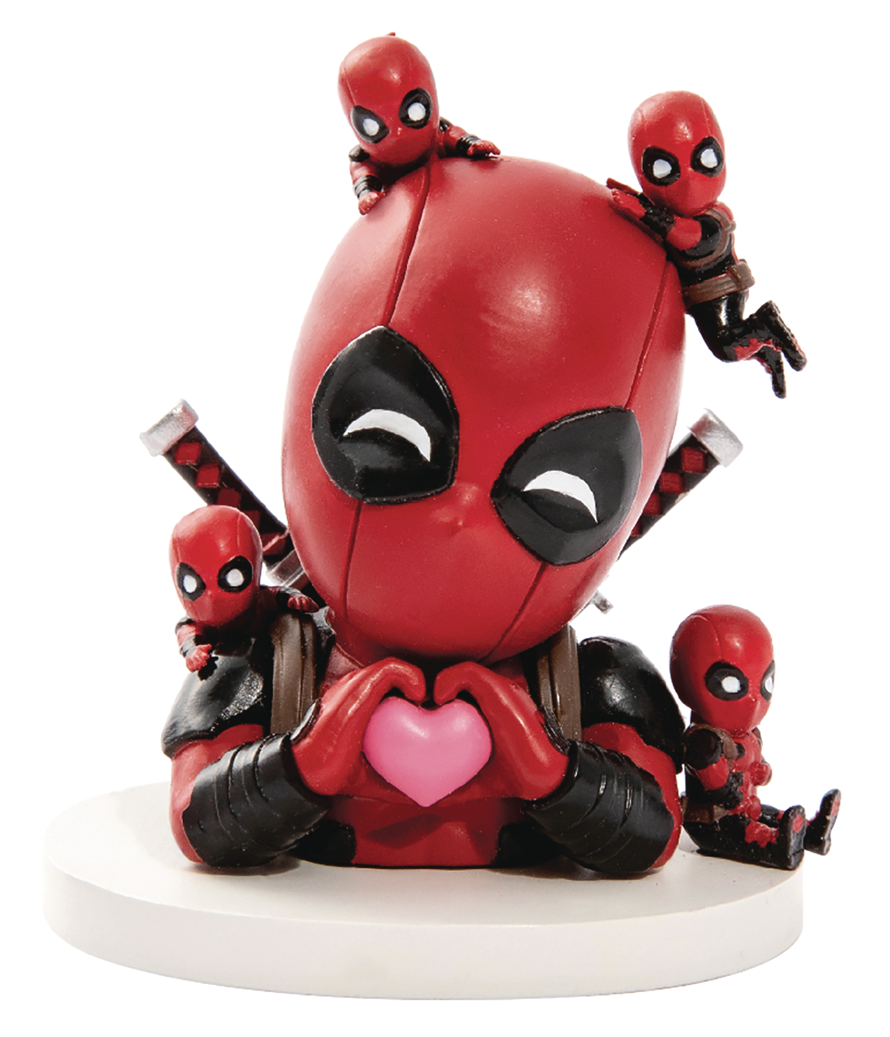 From Beast Kingdom. A PREVIEWS Exclusive! Beast Kingdom has paired up with Marvel and Diamond Comics to offer fans a line of mini Egg Attack figures inspired by the merc with a mouth, Deadpool! These adorable non-articulated Deadpool figurines feature themed bases and stand about 3 1/2" tall.