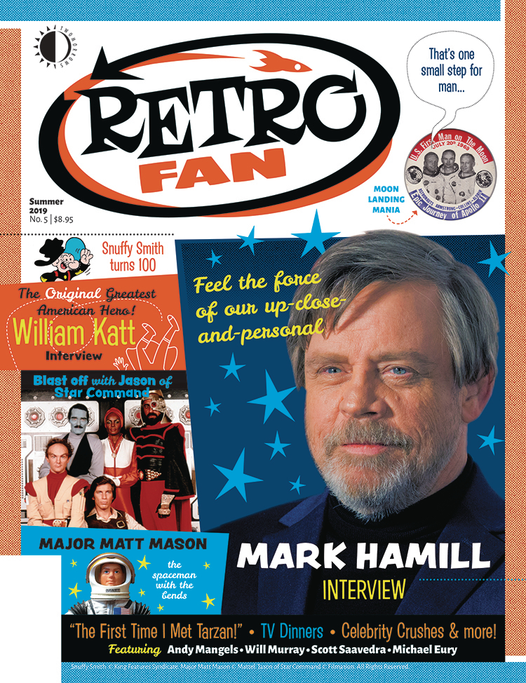 Feel the force of our up-close-and-personal interview with Mark Hamill! Believe it or not, we look back at The Greatest American Hero, with a William Katt interview! Andy Mangels blasts off with Jason of Star Command! Scott Saavedra stops by the Museum of Popular Culture! New columnist Will Murray remembers "The First Time I Met Tarzan." Plus: Major Matt Mason, Moon Landing Mania, Barney Google and Snuffy Smith at 100 with cartoonist John Rose, TV Dinners, Celebrity Crushes, and more fun, fab features!