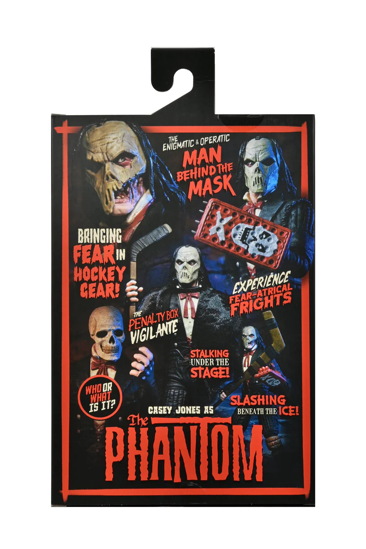 Universal Monsters x Teenage Mutant Ninja Turtles action figure starring Casey Jones! This continuing line pays tribute to the world's most famous turtles and Universal's icons of horror. Casey Jones as The Phantom reimagines the vigilante as the enigmatic and operatic man behind the mask who haunts the hockey rink! This 7" scale figure includes removable soft goods cloak, skull, hockey sticks, gloves, and interchangeable heads and hands. Comes in collector-friendly window box packaging with opening flap featuring an all-new illustration by Daniel Horne.