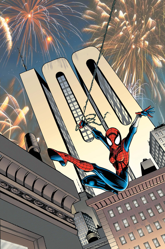 Is this truly destined to be the last Spider-Girl story? The Hobgoblin, the Scriers and the Black Tarantula sure hope so. Come celebrate 100 uninterrupted issues of the little comic that could and enjoy the fun as Spider-Man joins Spider-Girl for one last super-battle. Plus the final fate of Normie Osborn and the Venom Symbiote, Moose's farewell to Midtown High, the death of a hero, special feature pages, two classic Spider-Girl stories, a surprise announcement and more!