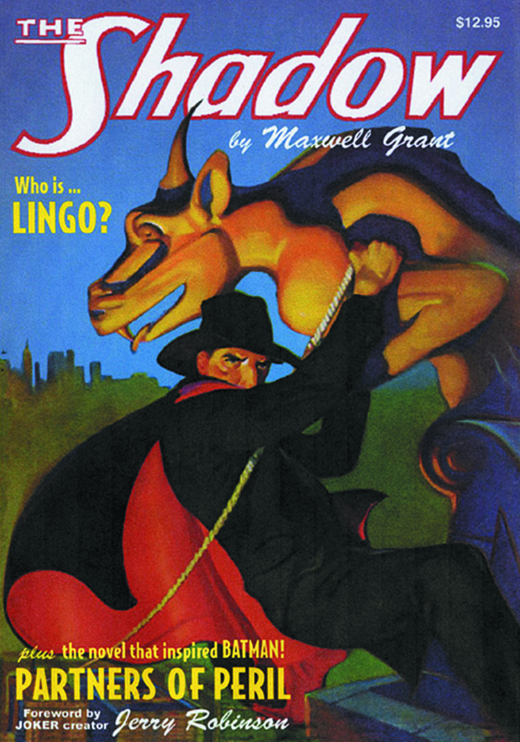 Celebrating the 75th anniversary of Batman's debut, Sanctum Books re-solicits the first edition of the book that rewrote the history of Batman! First, a powerful new underworld kingpin crosses swords with The Shadow in "Lingo," one of Walter Gibson's all-time masterpieces which introduces The Shadow's customized yellow boomerang which inspired the Batarang. Then, in "Partners of Peril" by Theodore Tinsley, Lamont Cranston investigates chemical syndicate murders in the landmark thriller that was adapted by Bill Finger and Bob Kane as Batman's debut adventure in