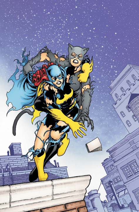 Batgirl and Catwoman keep crossing paths and wrestling over a notebook stolen from Commissioner Gordon. But who's the mysterious third party involved? And where's he pointing that big gun?