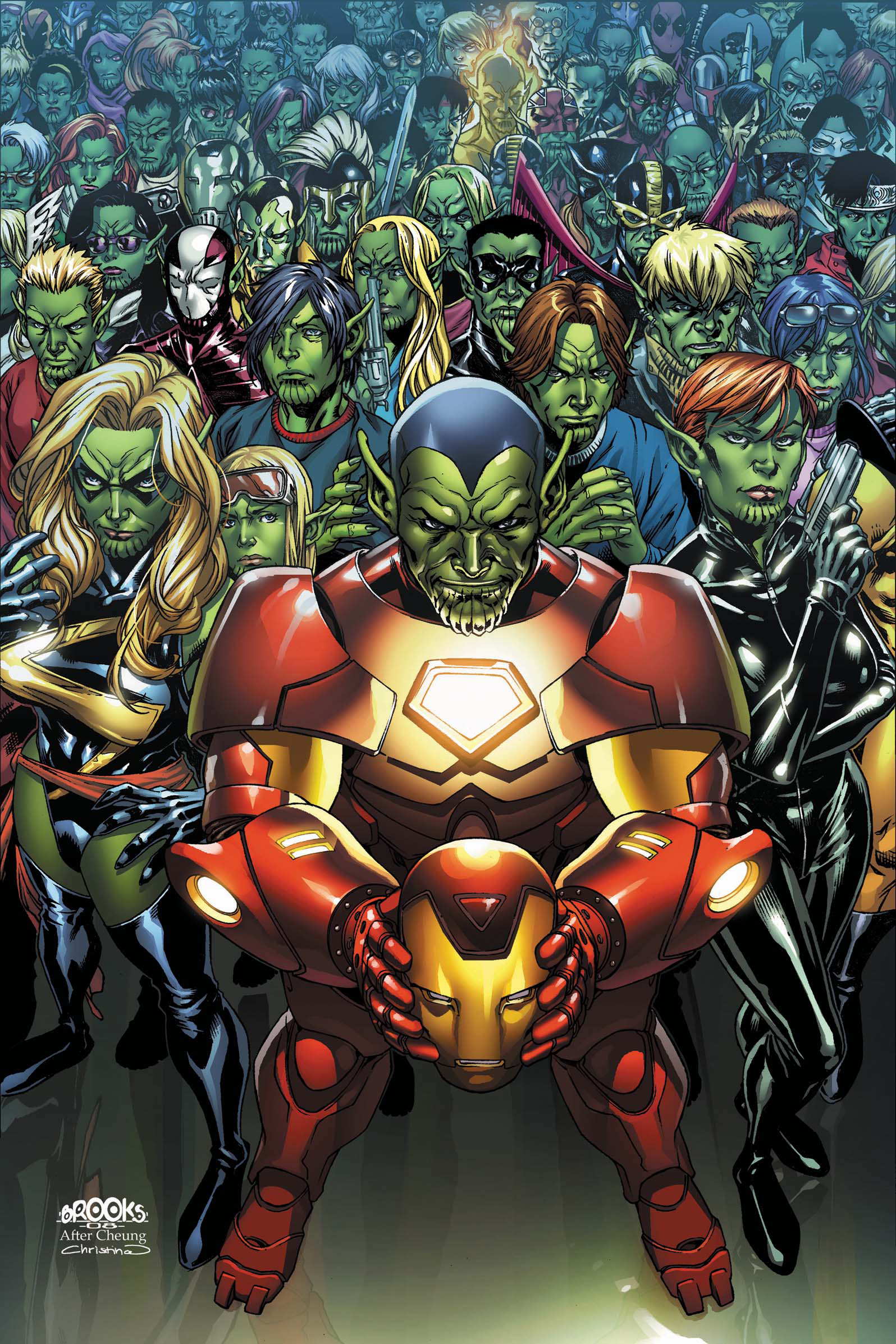 With the NEW AVENGERS and the MIGHTY AVENGERS trapped in the Savage Land, it's up to the AVENGERS INITIATIVE to face off against the first major strike of the Skrull Invasion! There, on the field of battle, the cadet with the biggest secret has to choose how red (or green) his blood really is. Heroes will fall. Heroes will die. And one shall rise. All THIS and: A new cowardly low for ANT-MAN! A new danger for WAR MACHINE! And 3-D MAN gains a "killer" new "krew"!