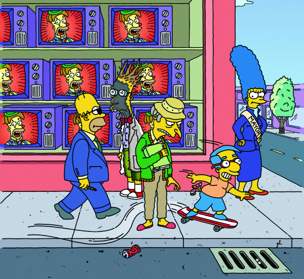 It's a battle of the bards when Lisa, the poet laureate of McBean's coffee bar, and Martin, representing Moe's Tavern, go head to head in a beatnik beat down of iambic proportions, and boy do they have a syntax to grind! And when Professor Frink puts reality on the blink, he leaves Springfield in an altered state where Mayor Marge Bouvier-Ziff must fend off a seasoned hitman named Homer, and overachiever and rebel Milhouse Van Houten continually puts one over Principal Bob Terwilliger. Who will get busy and bring an end to this time warp tizzy? Also catch up on the latest fanzine featuring the Be Sharps. Collects