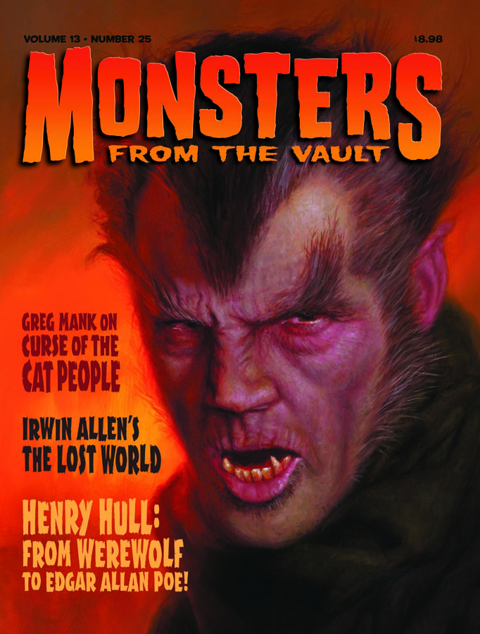 The 25th issue of Monsters from the Vault features Daniel Horne's beautiful Werewolf of London painting on the cover. The issue opens with Cortlandt Hull discussing his uncle's role in Werewolf of London and as Edgar Allan Poe on stage. Next up, longtime contributor Greg Mank looks at the production of Val Lewton's 1944 film, The Curse of the Cat People. First-time contributor Mark Berry interviews David Hedison about working with Irwin Allen on his 1960 film, The Lost World. Finally, Gary Rhodes examines Bela Lugosi's unmade sequel to Dracula, and John Clymer discusses the recently published revised edition of Universal Horrors: The Studio's Classic Films, 1931-1946 with authors John Brunas, Michael Brunas, and Tom Weaver. In addition, editorial comments, letters to the editor, DVD/CD/book reviews, and a few surprises await you in this issue. Each article contains tons of rare photos, all beautifully reproduced.