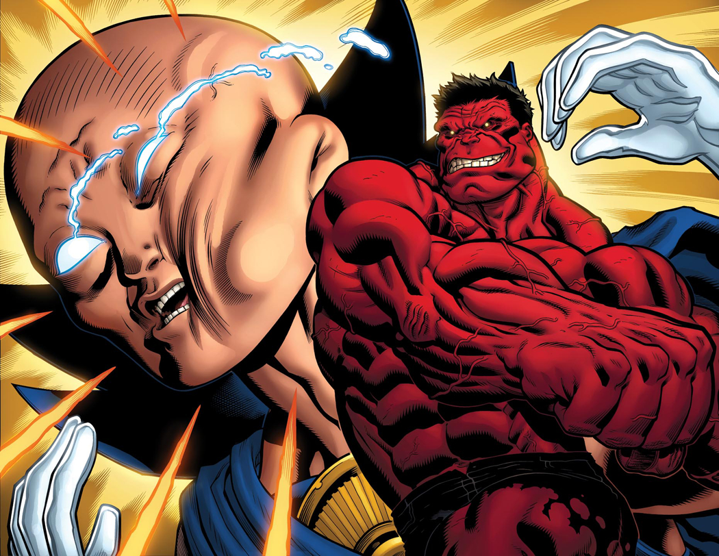 From Marvel Comics. This is it. The one you've been smashing for. The Green Hulk Returns! It's Green Hulk vs. Red Hulk - but the real loser is the Planet Earth. There have been knock-down-dragger-outters in the Marvel Universe - but nothing like this! Plus, who gave the Watcher such good seats??? If you read one comic book this month, it's gotta be