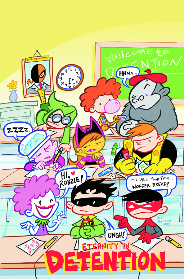 School's over, but the Tiny Titans can't leave yet - they're stuck in detention! How did that happen?  Meanwhile, elsewhere in the school, Principal Slade's got some dirty jobs...and Darkseid's gotta do them!