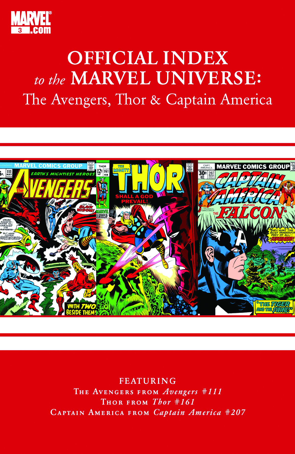 The chronicle of the Marvel Universe returns as the All-New Official Index to the Marvel Universe delves into the history of three more of Marvel's most enduring titles! Return with us to the Silver and Golden Ages as we launch our coverage of the Avengers (from AVENGERS #111), Thor (from THOR #161), and Captain America (from both CAPTAIN AMERICA #207 and 1941's CAPTAIN AMERICA COMICS #11). Watch the Marvel universe's history unfold month by month as each issue provides synopses for dozens of individual comics, including back-up strips, introducing the characters, teams, places and equipment that appeared within, providing vital information about first appearances, where they last showed up and where they appeared next!