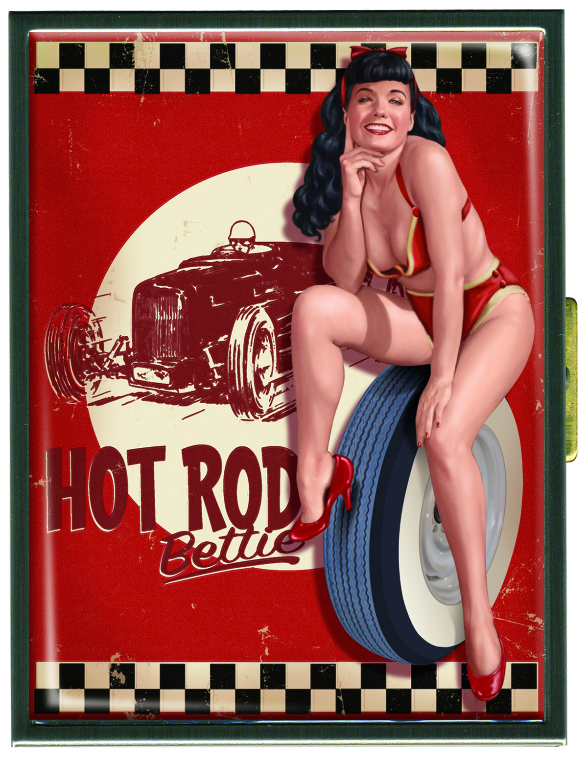 Retro-a-go-go! has added color to some classic Bettie Page shots, and these are their best designs yet! Rev your engine for hot-rod Bettie and soothe your senses with aquamarine Bettie. And that's not all . . . two new styles coming next month!