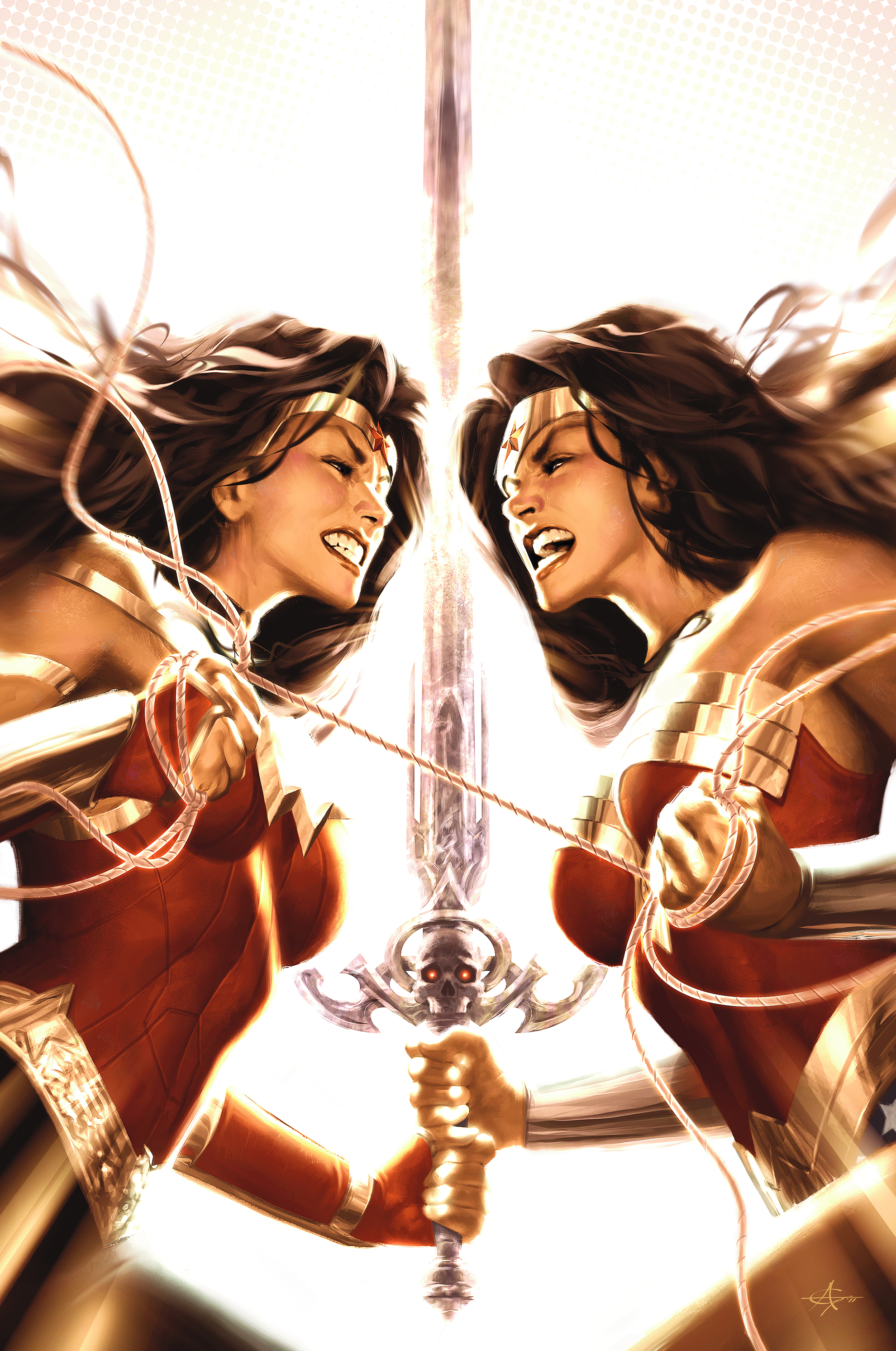 The mega-opus "Odyssey" proved too big, it needed two extra issues to tell J. Michael Straczynski and Phil Hester's full story! It's classic Wonder Woman versus the new one! Even if she wins, she loses!