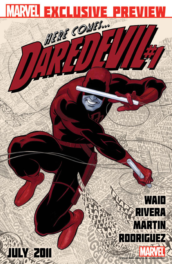With new enemies, new friends...and that same old "grinnin' in the face of hell" attitude, The Man Without Fear is back in a double-sized first issue and leading with his face! Mark Waid (AMAZING SPIDER-MAN, Irredeemable, RUSE) joins neo-legendary artists Paolo Rivera and Marcos Martin for a new spin on Daredevil that will leave you gasping for air. Having turned his world upside over the past several years, Matt Murdock realizes that justice may not be blind to his past and villains may not be the only ones looking for answers. Bring it on. If Matt Murdock could see what he was doing...he'd be terrified.