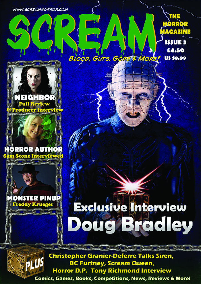 The sixth issue of the UK's number one Horror magazine features an exclusive interview with Pinhead himself, Doug Bradley! Other features include an interview with Sam Stone, a Freddy Krueger pin-up, and a spotlight on Neighbor! As well as the usual reviews of DVDs and Blu-Rays, books, comics and much more.