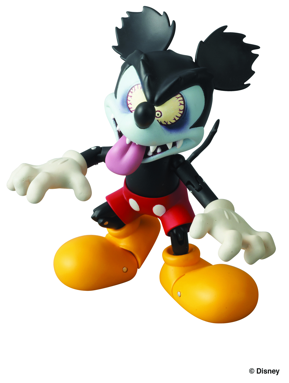 Imported from Japan! In Disney's 1995 animated short "Runaway Brain," Mickey Mouse found himself the subject of a mad scientist who wanted to create a Frankenstein-like monster. The monstrous Mickey, with his awkward joints and slavering tongue, is brought to life by Medicom as part of their new action figure line, the Miracle Action Figure (MAF). Standing 4 1/2" tall and with 18 points of articulation, the