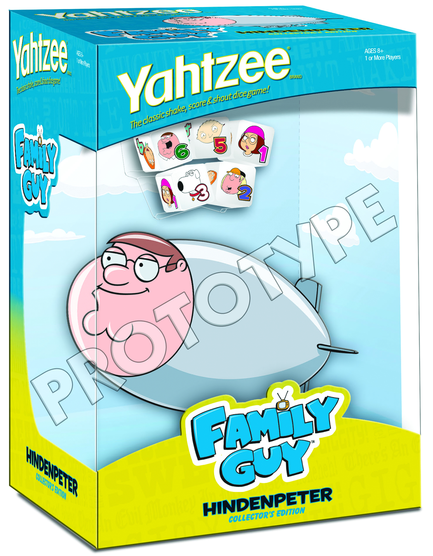 Family Guy twist! Game comes complete with the "Hindenpeter" as the dice cup, 5 custom