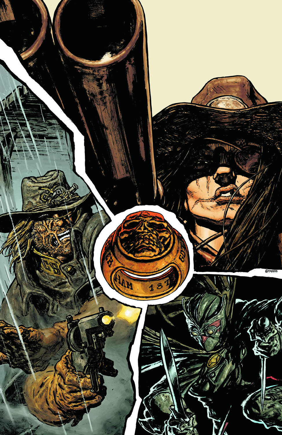 JONAH HEX and TALLULAH BLACK face the Lord of Assassins' steam-powered death machine.