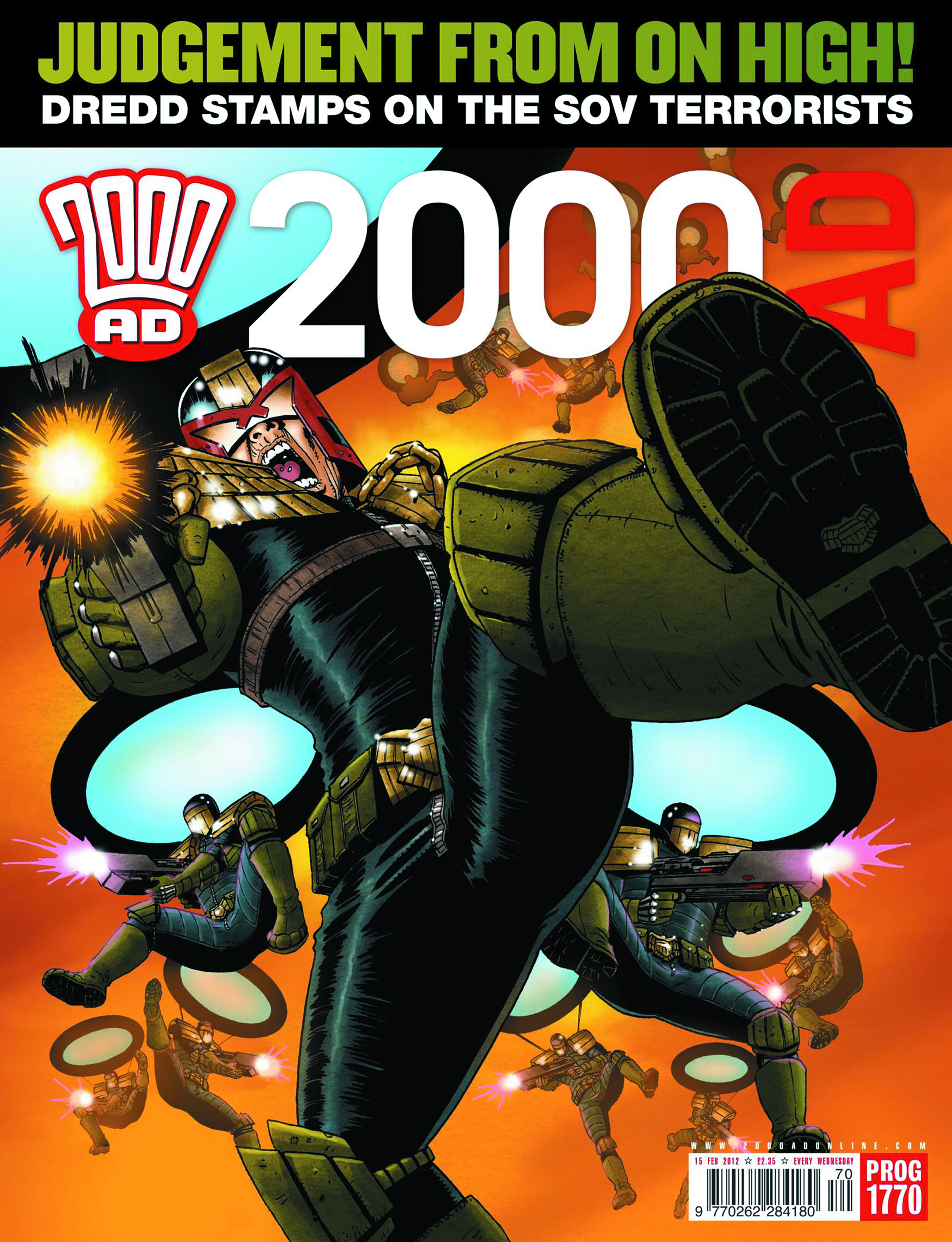 This summers sees an explosion of stunning stories in 2000 AD, the UK's multi-award-winning SF anthology! Mega-City criminal Lenny Zero returns for a new series, "Zero's 7," as he assembles a heist team to pull off the most audacious robbery ever seen in the metropolis; warrior without a soul Aquila is back in "Blood of the Iceni" as Boudicca entrusts him with a mission to assassinate a Roman target; Ichabod Azrael tumbles through the dimensions, tracked by the Hunter in "The Grievous Journey of Ichabod Azrael"; the ETC cops are investigating a series of murders in "Grey Area: This Island Earth"; and the Day of Chaos has arrived in Judge Dredd, but who remains alive to witness it?