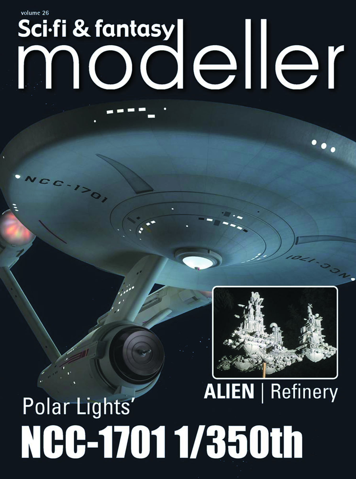 Sci-Fi & Fantasy Modeller promises genre modelers an exciting and exclusive menu of reviews and features. One hundred all color, perfect bound pages present builds of the latest mainstream and garage kits plus scratchbuilds, studio-scale replicas, special projects, and more. Look for articles on the Polar Lights 1/350