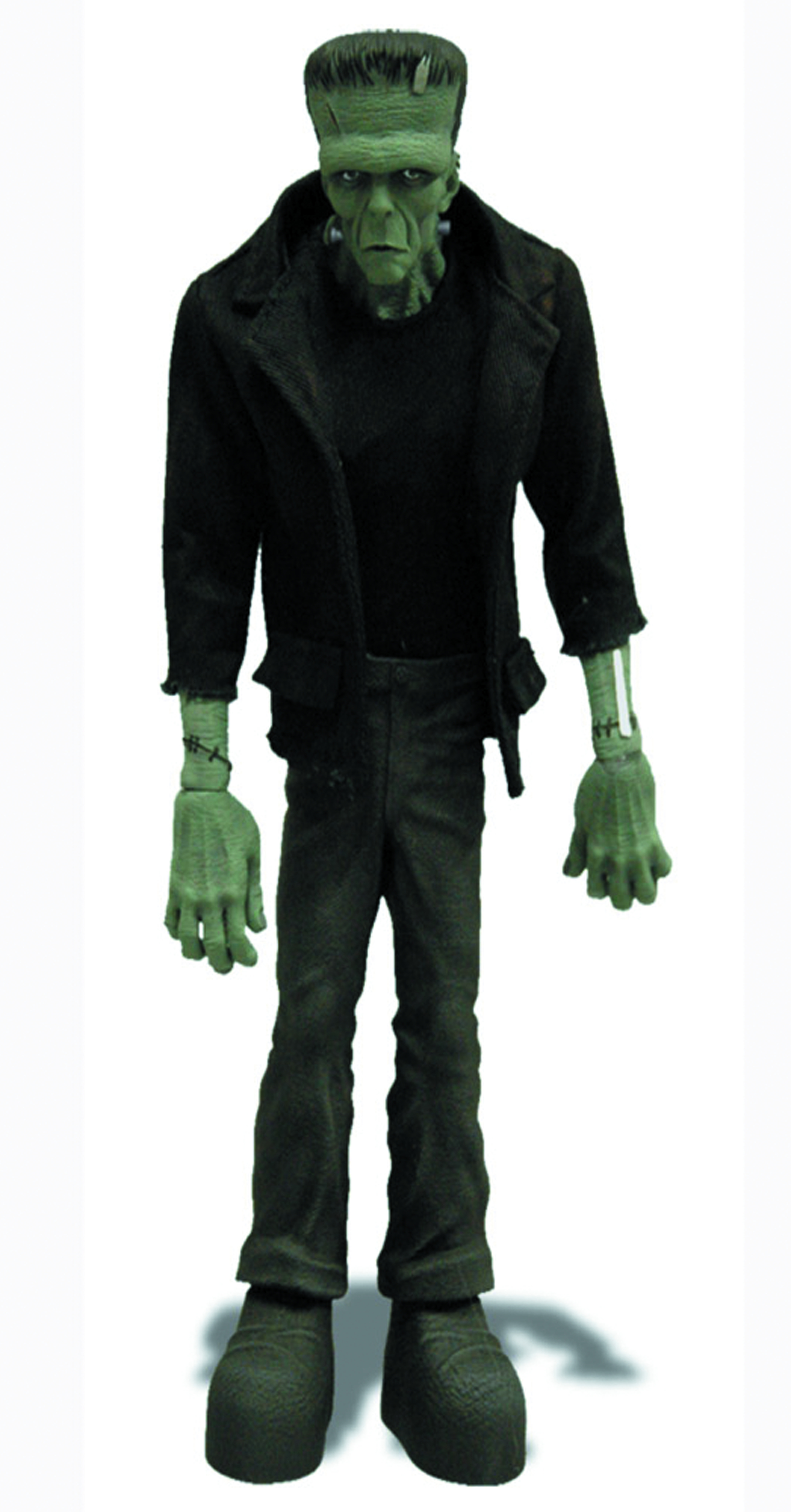 Mezco proudly presents one of the world's most famous monsters - Frankenstein! Constructed by the infamous Dr. Frankenstein from corpses and resurrected by curious machines powered by a bolt of lightning, he terrorized the countryside. Now he comes to life thanks to Mezco's award-winning design team. This 9" scale Frankenstein features a real cloth coat and shirt. His finely detailed body boasts ten points of articulation and is covered with scars from his assembly. Window box packaging.