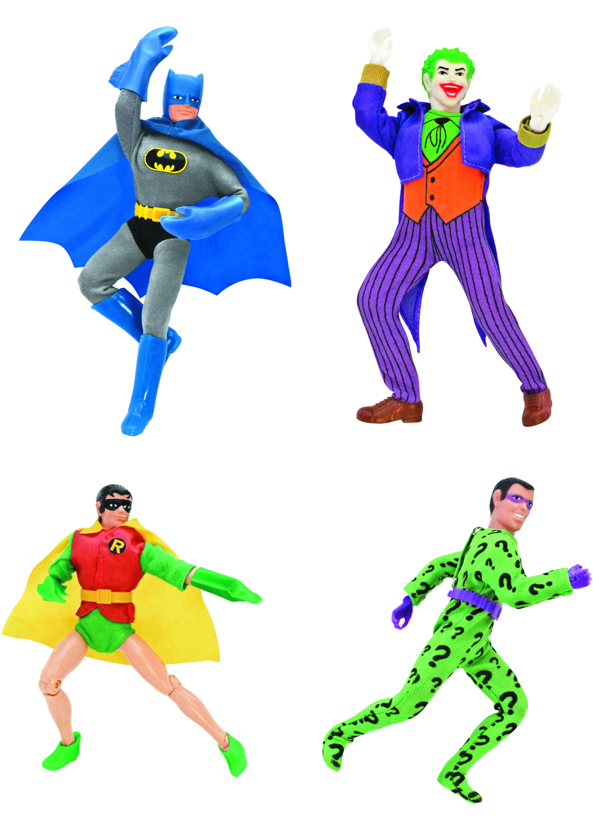 Batman characters! Each new 8-inch action figure is an exact replica of its original '70s counterpart, right down to the cloth clothing and retro-styling. With 16 points of articulation, you can pose them in any heroic position! Choose from: