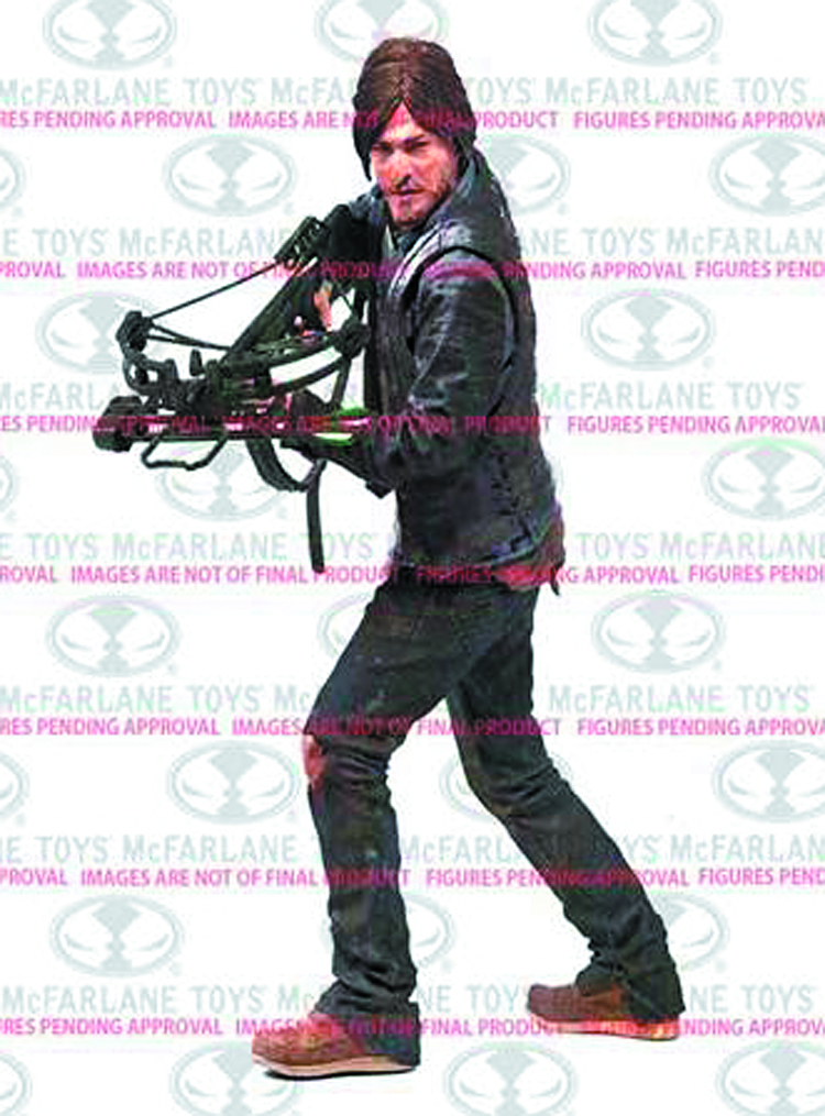 From McFarlane Toys. McFarlane Toys' Daryl Dixon deluxe figure features the exact likeness of the actor, taken from a full 3D scan of the actor himself, Norman Reedus. The 10" Daryl figure is portrayed in his iconic angel stitched biker vest and includes removable poncho, hunting knife, and crossbow.