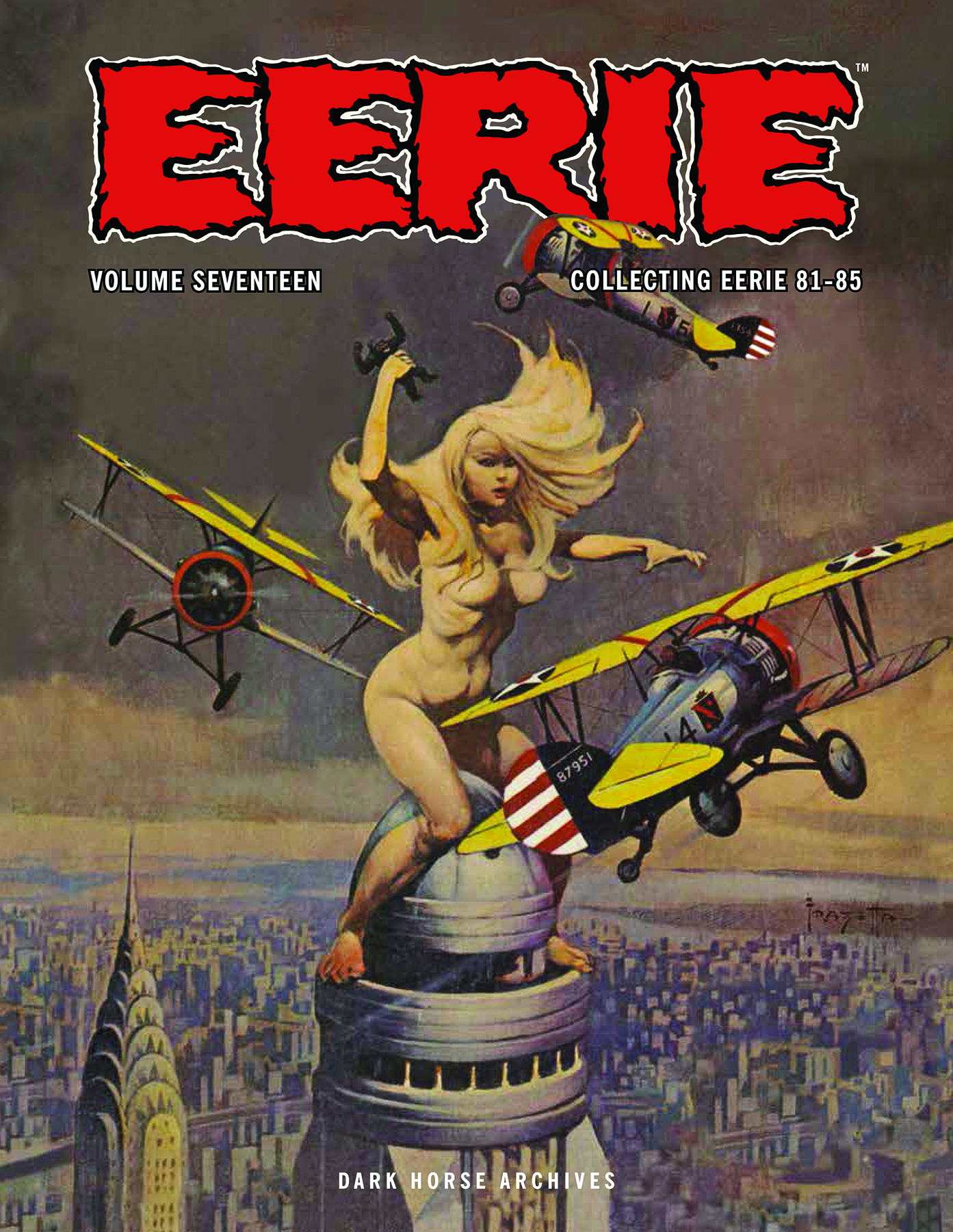 The Eerie anthology of horror, fantasy, and science fiction overflows with a bounty of black-and-white tales, always delivering bizarre twists and ironic punches! The latest volume in this award-winning hardcover series features early pieces starring Jim Starlin's Darklon the Mystic, gorgeous color covers by Frank Frazetta, and plenty of standalone scares! Collects Eerie magazine #81-#85.