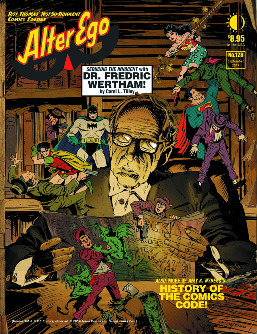 Mr. Monster's Comic Crypt; Bill Schelley on comics fandom history, and more! All behind a new cover featuring Dr. Wertham, Superman, Wonder Woman, Batman, and Robin by Jason Paulos and Daniel James Cox! Edited by Roy Thomas.