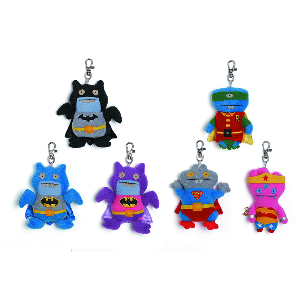 Take the power of Superman and Batman with you wherever you go with the Uglydoll/DC Comics plush clip-ons! Babo is dressed as Superman, Ice-Bat is Batman, Wage is Robin, and Tray is Wonder Woman, and they will fight for truth, justice, and happiness!