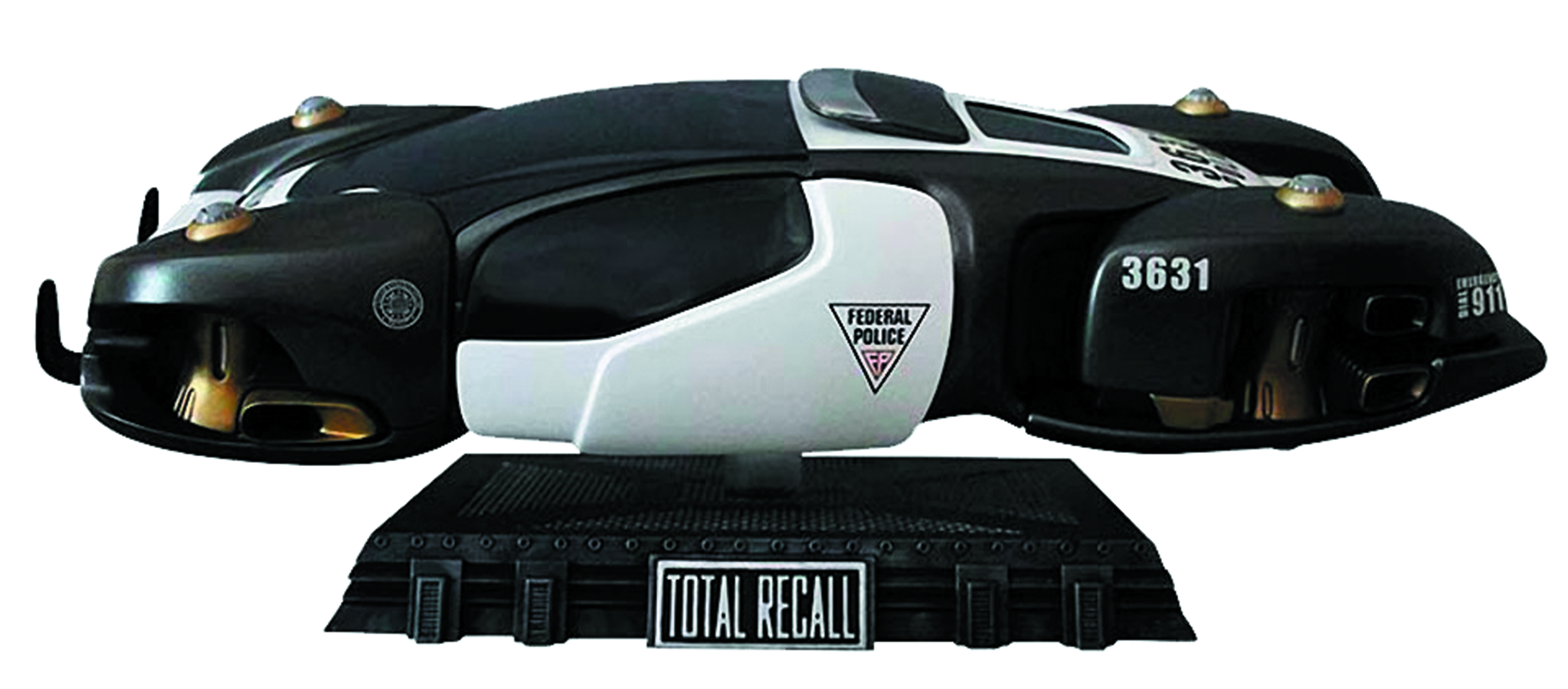 Total Recall. These Hover Cars feature prominently throughout the movie in numerous exciting car chases as Quaid tries to evade the forces of the USB's Federal Police! Measuring 20" in length, this large-scale model is beautifully detailed, and comes complete with a movie themed display base. This museum quality replica is constructed from heavyweight polystone and mixed media, then individually hand painted to the finest detail. Limited to just 500 pieces worldwide!