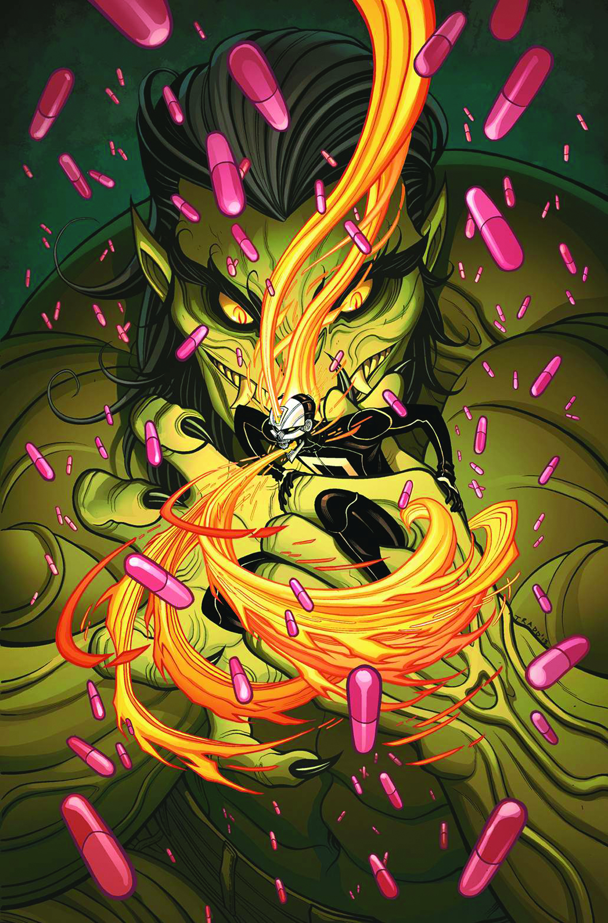 From Marvel Comics. "Engines of Vengeance" Part 3 -- Ronnie meets the mysterious entity behind his possession. Is the all-new Ghost Rider a hero or a villain? Mr. Hyde takes on the street gangs while a thug discovers the power of Dr. Zabo's pills. Scheduled to ship 07/30/2014. (161)