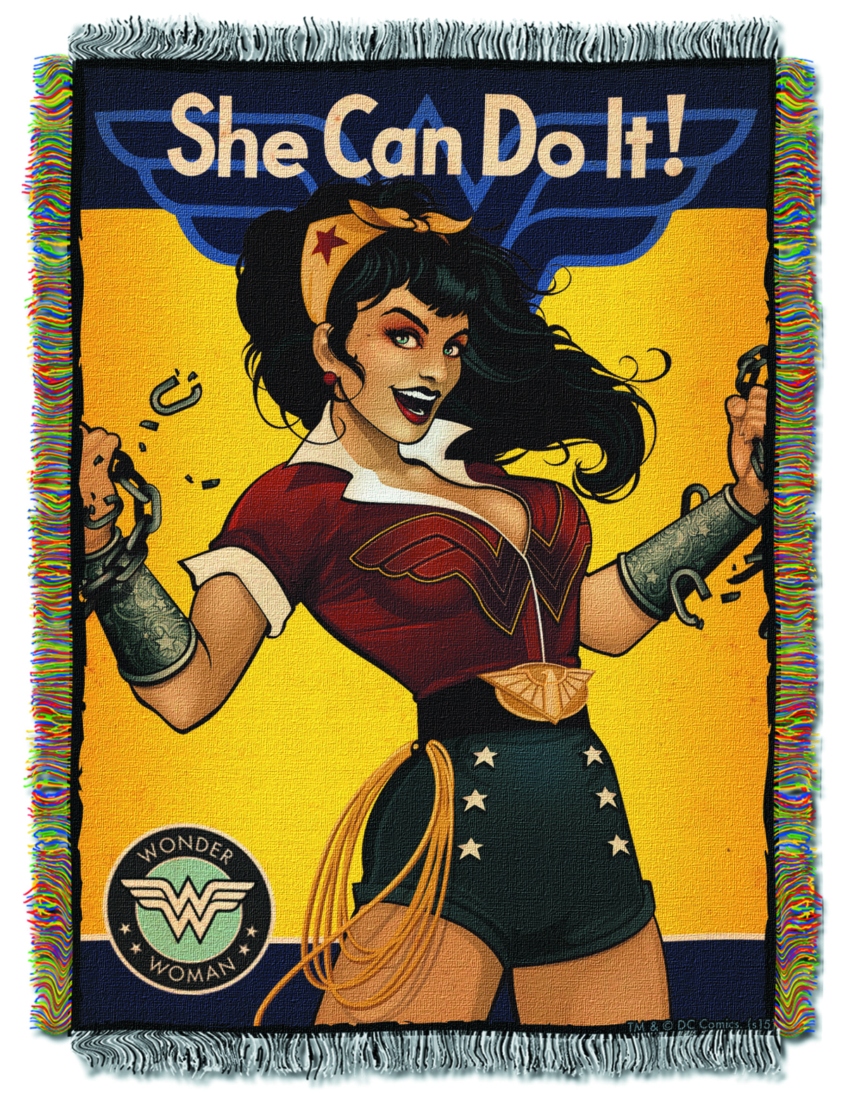 A PREVIEWS Exclusive! Bring home your favorite DC Comics Bombshell with the Wonder Woman or Harley Quinn tapestry. Each measures 46" x 60", is made of soft acrylic, and carries vivid detail of the character in her Ant Lucia Bombshell costume. Display her over your bed, couch, or even hang it on the wall so you can bask in her retro 1940s pin-up glory. Made in the USA.