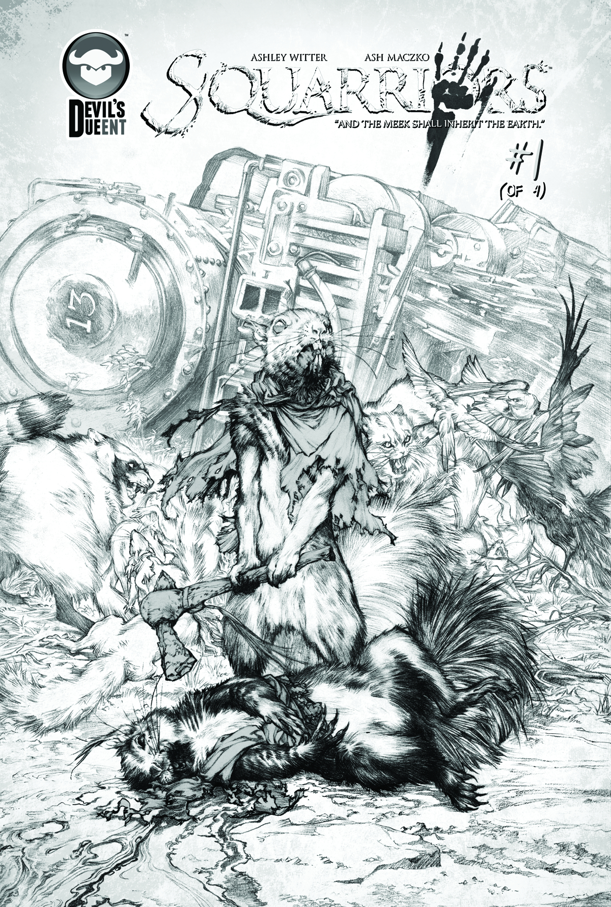 Devil's Due's hit series by Ashley M Witter and Ash Maczko has taken the indie comic scene by storm. With issue one sold out and into its second printing, now you can own this version featuring Ashley Witter's amazing penciled line-art, and see the painstaking detail that goes into this warring rodent saga before the digital painting is added.