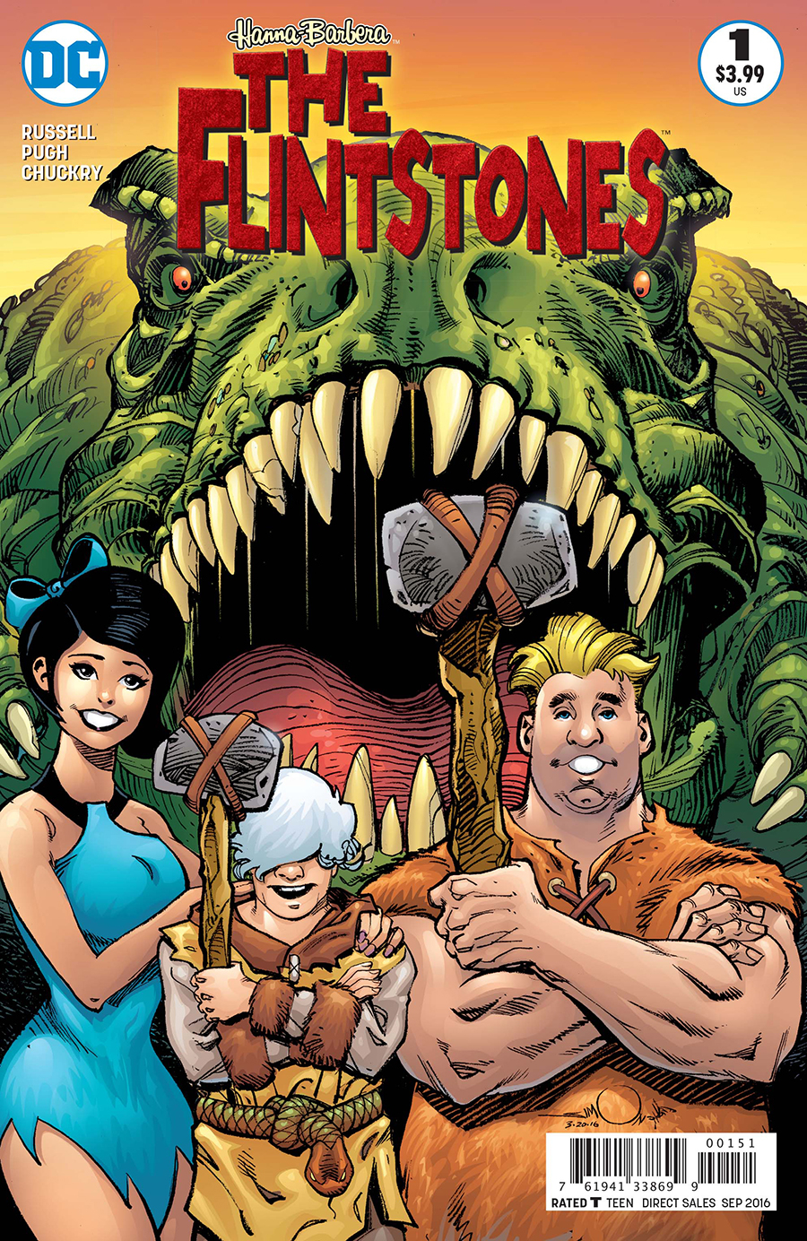 Welcome to Bedrock, where Paleolithic humans head to dinner for a taste of artisanal mammoth after shopping at Neandertall & Big Men's Clothing, where Wilma shows her modern art, and where, if you take a plane, you could literally end up sitting ON the tail section. Join Fred and Barney as Mister Slate sends them on a mission to show some Neanderthals a night on the town in hopes of luring them into this new system called "working for a living." In Slate's Quarry, of course. Is Fred's ship about to come in? Find out when the gang finishes out the evening at the employee hot tub party, where they learn how the one percent lives here in Bedrock, home to the world's first civilization and the modern stone-age family-The Flintstones. Don't miss this extra-sized debut issue!