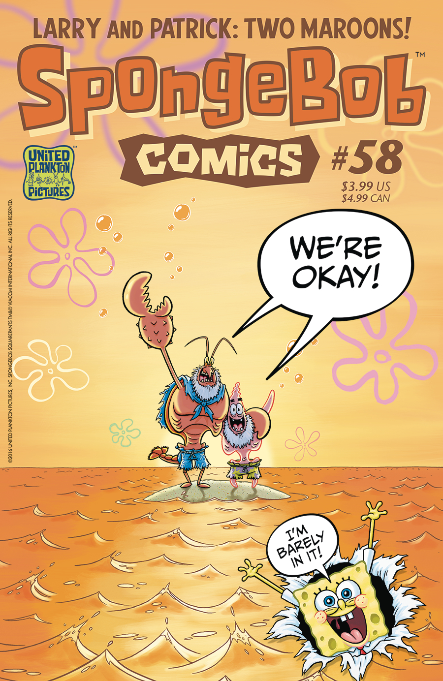 SpongeBob epic with only a little bit of SpongeBob! When Patrick's allergies cause him and Larry to be marooned far from Bikini Bottom, it's all Larry can do to keep his buff composure and rock-hard cool! Will sea monsters, tidal waves, and a distressing lack of free weights prove deadlier than being stuck 24-7 with Patrick? Plus, SpongeBob catches a magic jellyfish; Gary loses his bowl, a new "SpongeFunnies" from James Kochalka; and more ocean facts from Maris Wicks!