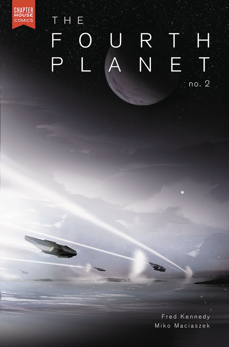 The Fourth Planet, a quarterly written by Fred Kennedy (Host, Teletoon at Night, The Edge) and brilliantly illustrated by Miko Maciaszek continues with its second exciting issue. The human refugees have their first encounter with the diminutive Yultan, and it quickly resorts to violence. Meanwhile the Foon perceive the human ship as a chariot of the gods, and set out to seek divine favor.