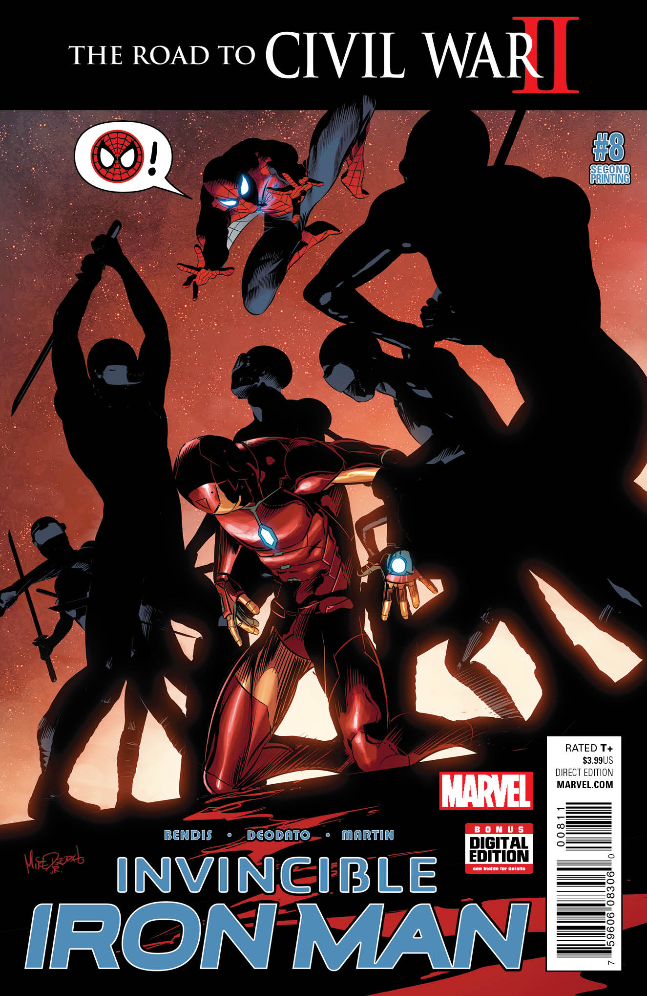 From Marvel Comics. "The War Machines" Part 3! Spider-Man, War Machine and Iron Man team up to stop a brand new threat to the Marvel Universe ... like only they can. All this plus more hints to next summer's insane Marvel blockbuster event. Rated T+. Scheduled to ship 08/10/16. (161)
