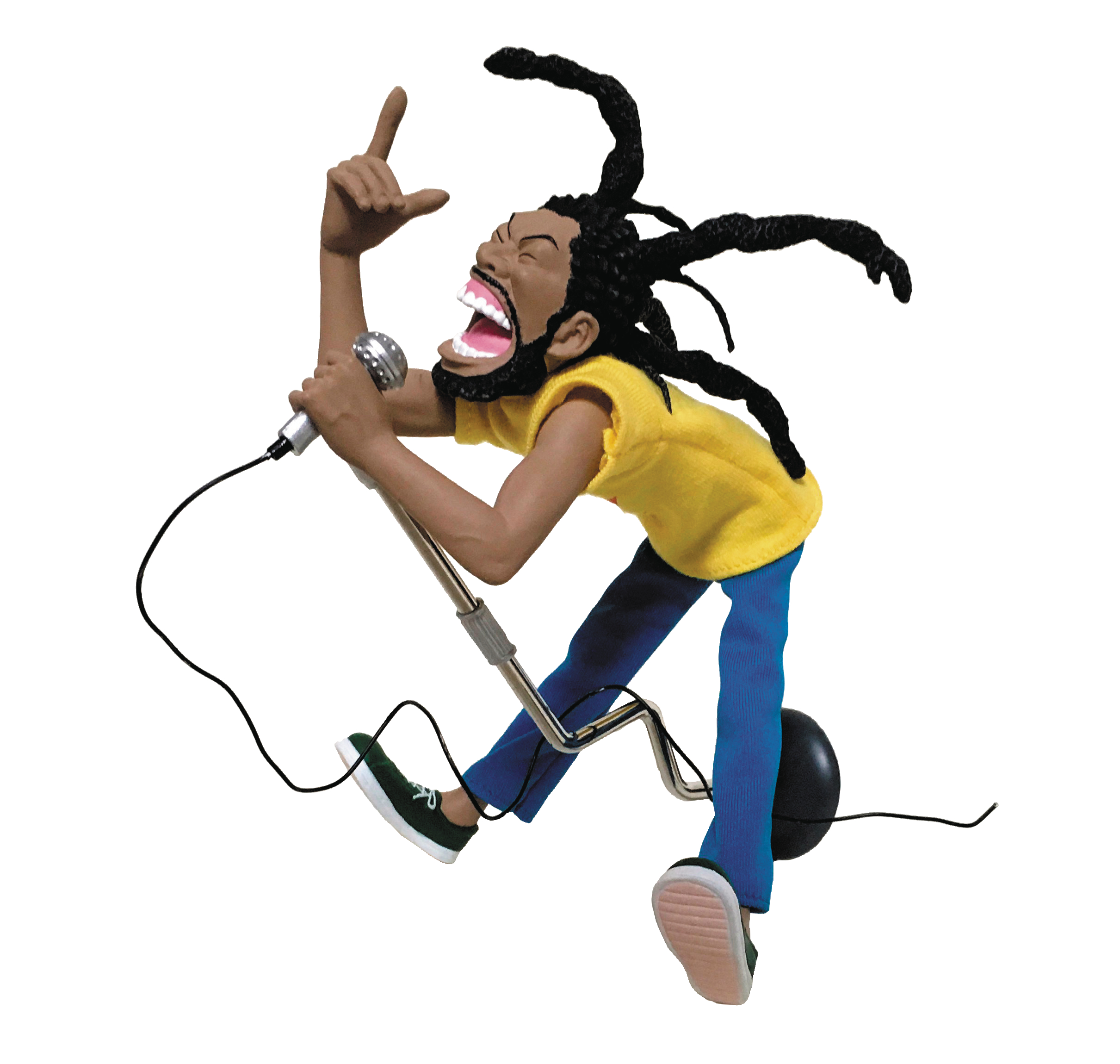 From Presspop. Hey, we got that P.M.A.! Hey, we got the P.M.A.! This is the figure of H.R. (Paul D. Hudson), the lead singer of the hardcore punk pioneer band, Bad Brains. Officially approved by H.R. Designed by Sof'boy comic creator, Archer Prewitt, he's made with PVC and ABS, his T-shirt and pants are made from fabric. This H.R. figure comes in beautifully designed large box packaging. A must have for all Bad Brains and punk rock fans!