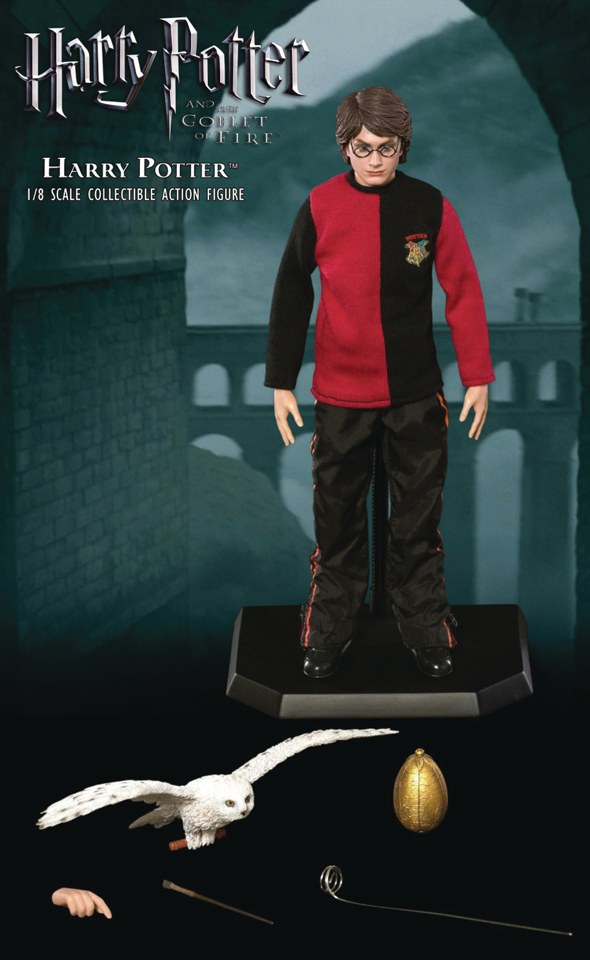 From Star Ace Toys. Star Ace are proud to present this all-new 1/8 scale collectible action figure of the teenage Harry Potter as seen in the film Harry Potter and the Goblet of Fire. The movie-accurate posable figure is based on the image of Harry during the action-packed Triwizard Cup dragon challenge scene! The highly detailed head sculpt features teen Harry with his glasses and iconic lightning scar. Harry's wand and flying Hedwig, along with the Golden Egg are included. A multi-positional figure stand is included.
