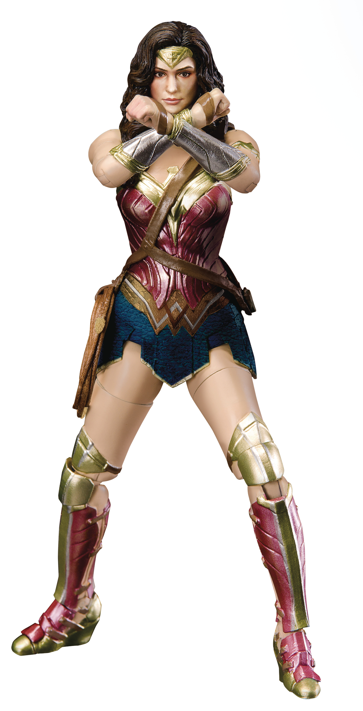 From Beast Kingdom. A PREVIEWS Exclusive. Beast Kingdom provides an all new interpretation of classic DC superhero Wonder Woman based on Gal Gadot's portrayal in Batman V Superman: Dawn of Justice in their D.A.H. (Dynamic 8ction Heroes) series! The figure is made with real human proportions, and has a total of 24 movable joints, allowing you to recreate any number of classic poses. With fine exterior design and detailed professional painting, not only are Wonder Woman's exquisite features and delicate visage perfectly recreated, her battle dress and gear are all faithfully recreated. A die cast version of Diana's Sword and shield are included.
