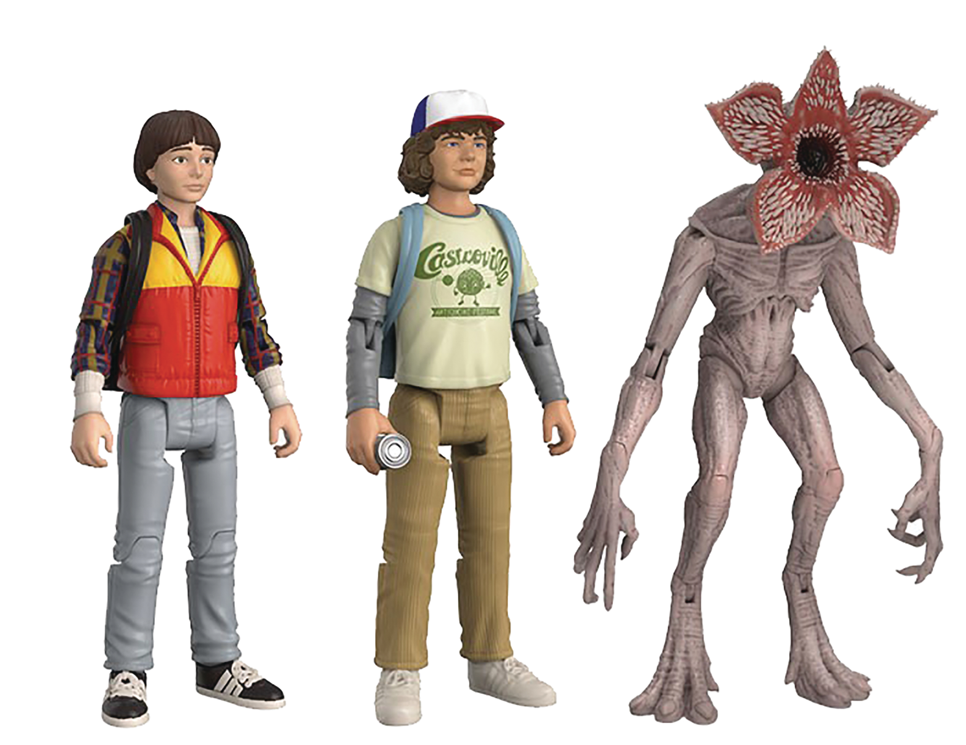 Demogorgon figures along with character specific accessories! The set comes packaged in a hangable window display box.