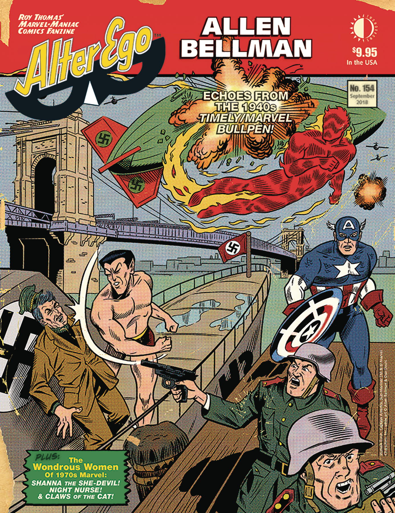 Alter Ego, Allen Bellman, artist in the original early-1940s Timely/Marvel bullpen, tells Dr. Michael J. Vassallo everything he didn't discuss in their 2004 interview, with art by Shores, Burgos, Brodsky, Sekowsky, Everett, Pfeufer, Klein, Burlockoff, Jaffee, Fago, et al. Plus, a spotlight on Marvel's trio of early-'70s heroine comics, featuring talks with Linda Fite and Paty Cockrum (