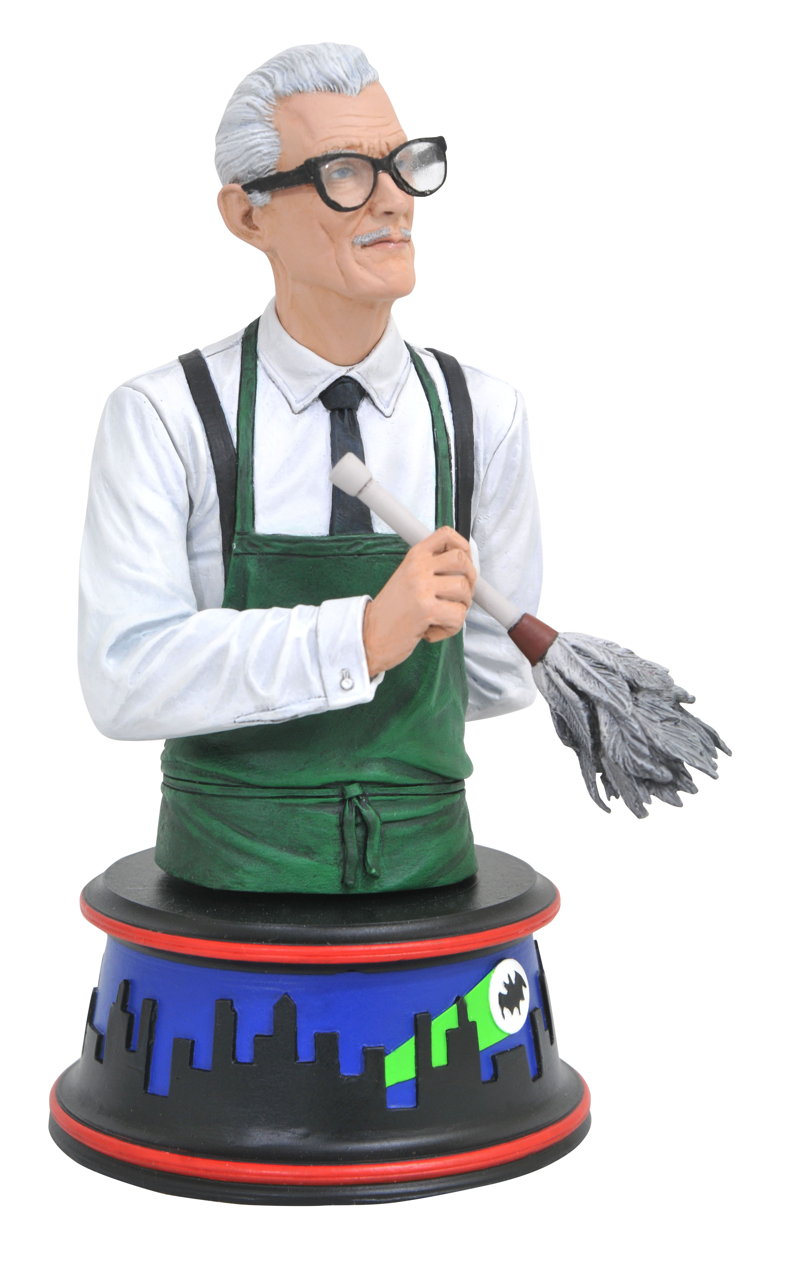 A Diamond Select Toys release! The epic line of resin busts based on the classic Batman TV Series continues, with the show's single most important character - Alfred! The sole keeper of Batman and Robin's secret identities, Alfred kept house at Wayne Manor and assisted Master Bruce and Master Dick whenever they needed him. This 6-inch bust comes armed with a feather duster, and sits atop a pedestal base inspired by the show's opening credits. Limited to 3,000 pieces, it comes packaged with a certificate of authenticity in a full-color box. Hand-sculpted by Jean St. Jean!