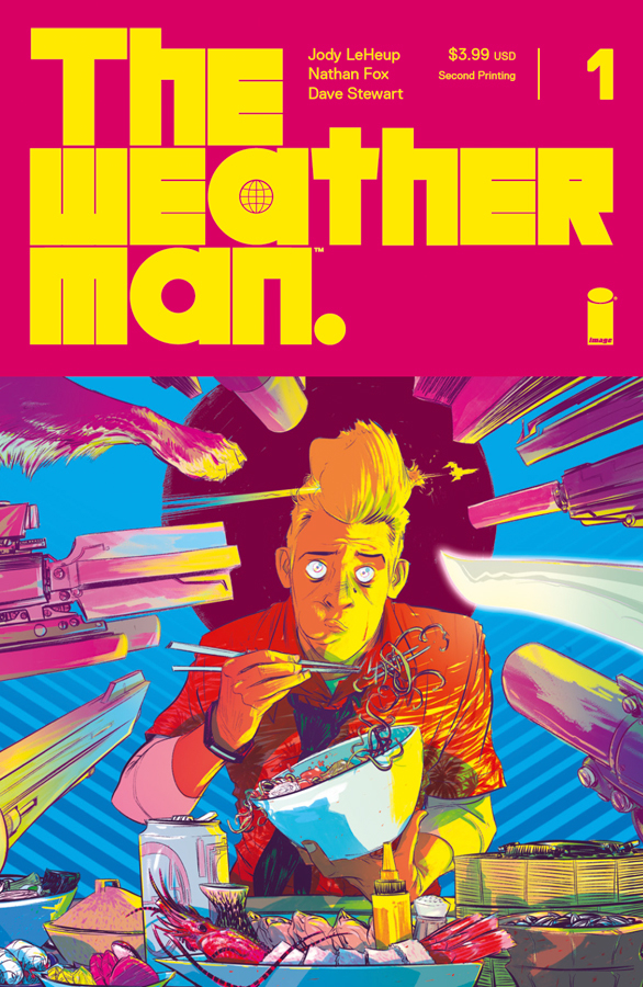 Writer JODY LEHEUP (SHIRTLESS BEAR-FIGHTER!), artist NATHAN FOX (DMZ, HAUNT, Dark Reign: Zodiac), and colorist DAVE STEWART (Hellboy, RUMBLE) present a full-throttle, widescreen science fiction epic about the damage we do in the name of justice and what it truly means to be redeemed...You don't want to miss THE WEATHERMAN!