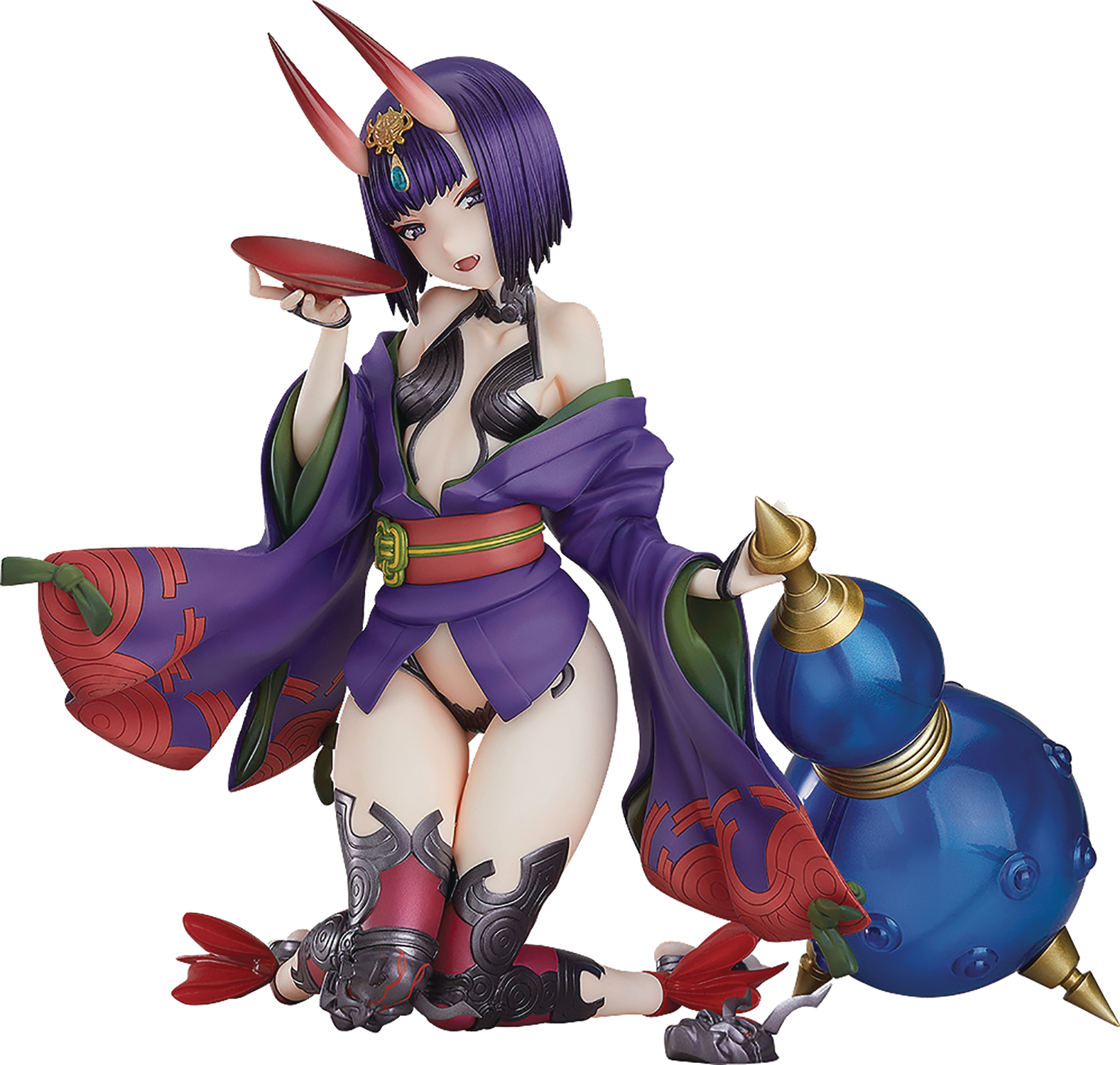 Shuten-Douji, based on her second ascension appearance in an original kneeling pose. The loose outfit that shows off her soft skin and beautiful curves has been detailed to capture the designs from the series as faithfully as possible, with the textures of the long sleeves carefully tuned to provide a soft, flowing appearance. Be sure to add her to your collection and your heart is sure to melt each time you look at her captivating expression!