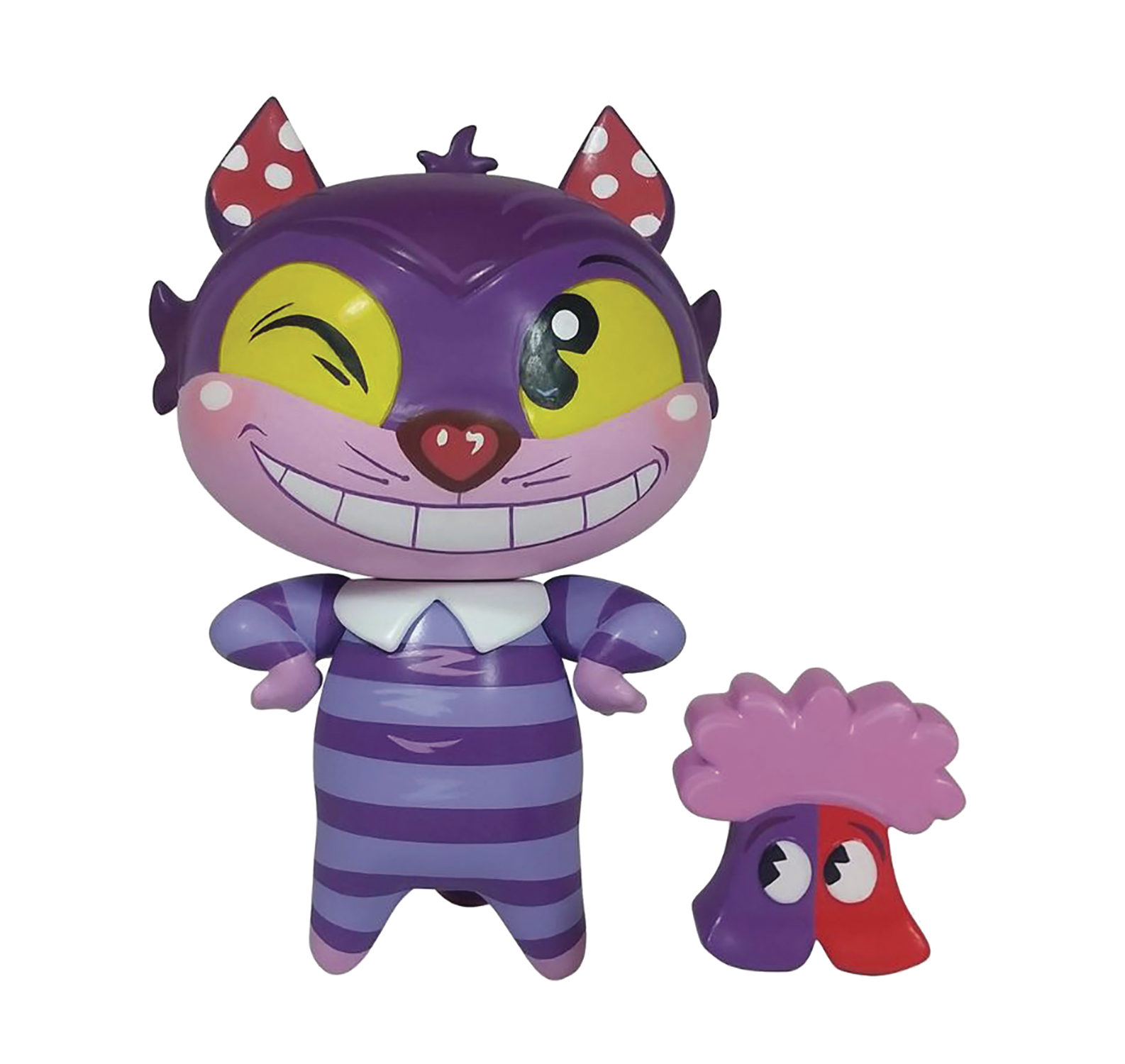 You'll be mad for Miss Mindy's captivating Cheshire Cat and his famous toothy grin. He happily welcomes you to Wonderland with a charming mini mome rath. Be sure to add this delightfully devious shapeshifter to your collection before he disappears! This 7" tall Cheshire Cat's unique Tripod design features vibrant color details and comes beautifully packaged in branded color window box suitable for display. Mome Rath stands about 2" tall and even comes in its own box for added value!