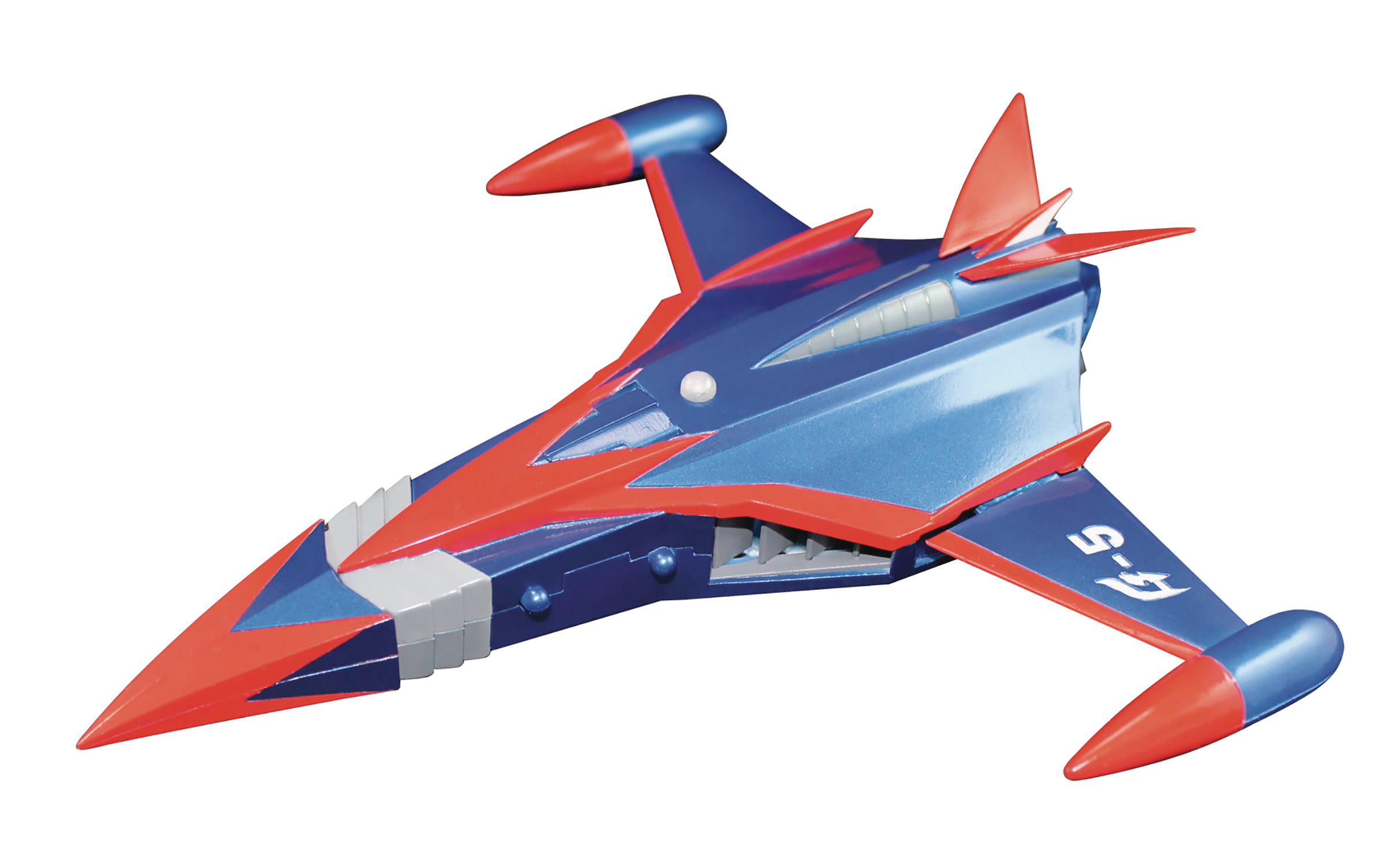 Gatchaman joins the Metal Action! series from Evolution Toy! Made with die-cast parts, it's 7.8" of sleek, retro-futuristic beauty; the Bird Missile and Super Bird Missile launch parts can pop up with the press of a button, the air intake can be opened and closed, and its amazing Firebird form can be reproduced with replacement parts! The landing gear, the Red Impulse and the other vehicles are also included, as is a stand for display. Add this iconic craft to your collection today!