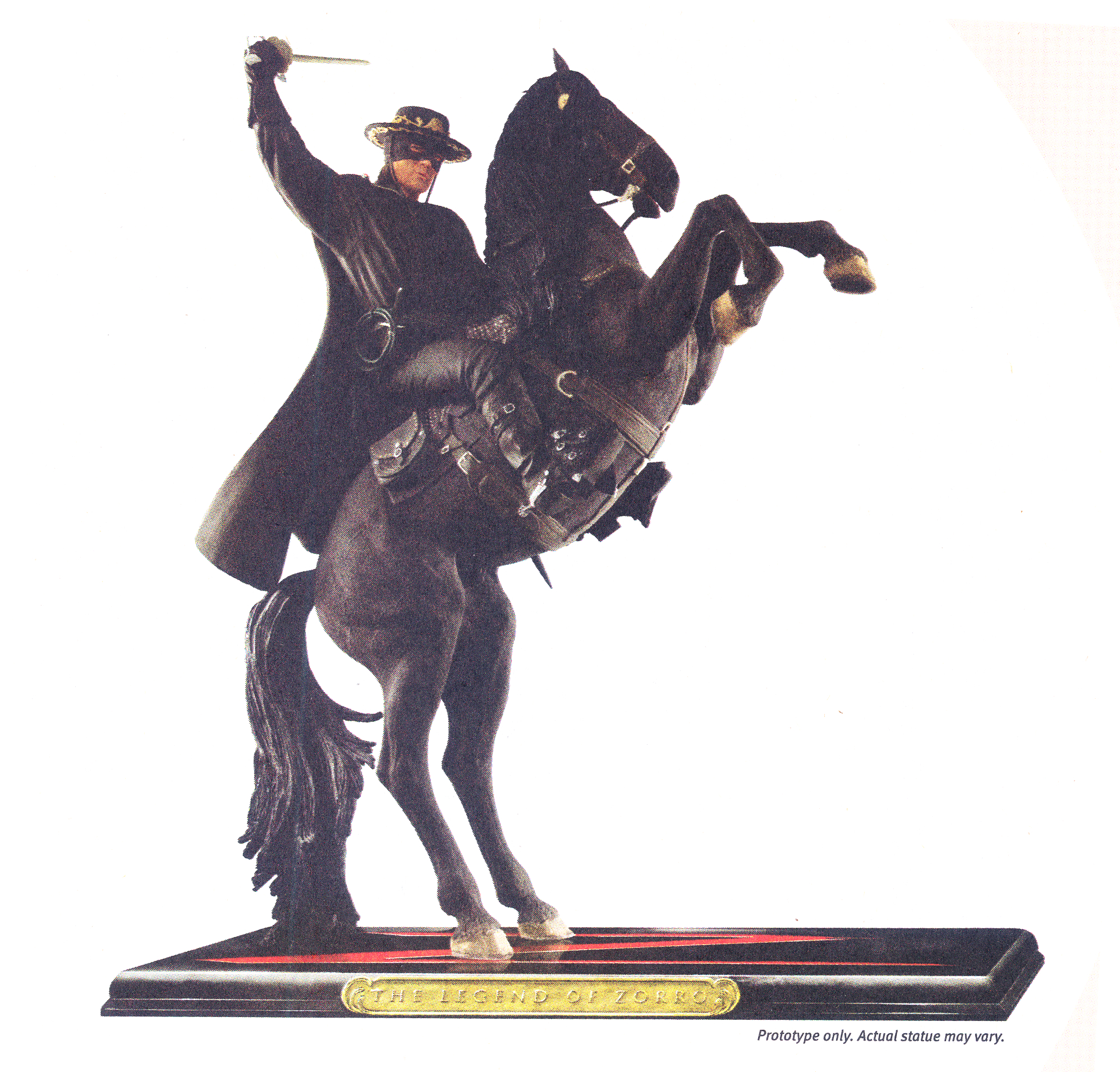 This is perhaps the most nuanced and sophisticated sculptural treatment of Zorro ever created. An heirloom for the serious collector, measuring approximately 13" high, this hand-painted, individually numbered statue is an instant classic.