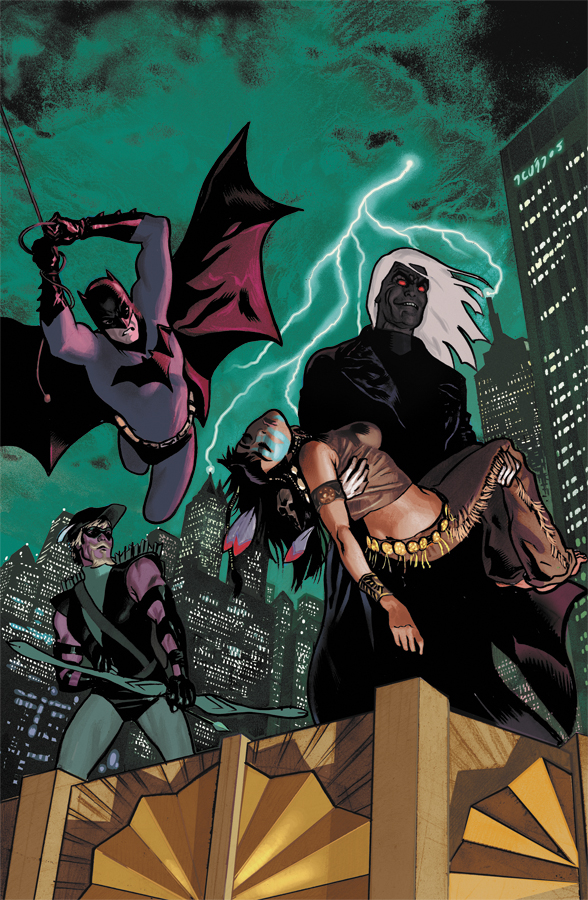"World Without a Justice League" Part 5 of 6! In the wake of Day of Vengeance, the Seven Deadly Sins have been unleashed upon the world and Envy has found his way to Gotham City - just in time to influence Green Arrow! But when jealousy and rage infect Oliver Queen's mind, he loses focus on stopping The Key and saving Dawn, and turns his energies on an even deadlier foe: Batman!
